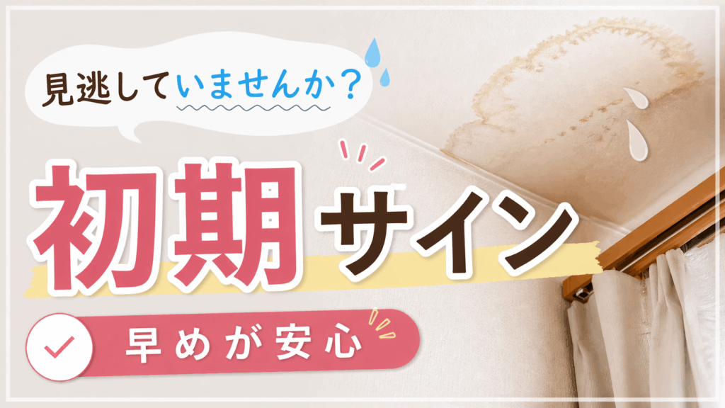 雨漏りは目に見える「水が落ちてくる」状態になる前に、いくつかのサインが現れることがあります。次のような変化に気づいたら、早めに確認・相談することをおすすめします。