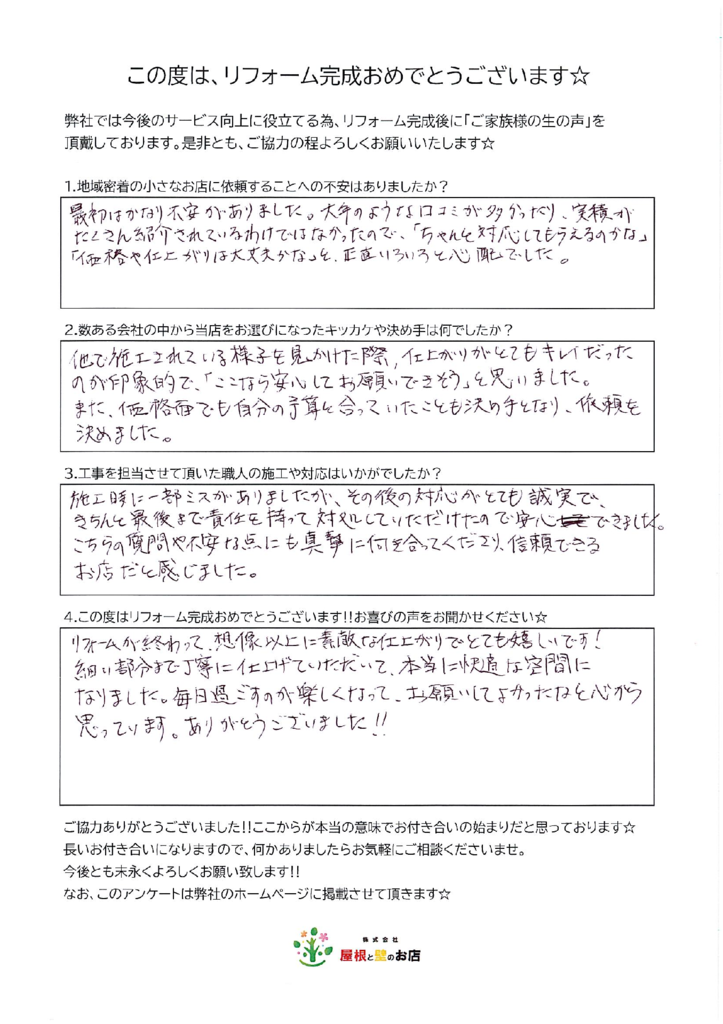 4.この度はリフォーム完成おめでとうございます‼お喜びの声をお聞かせください☆