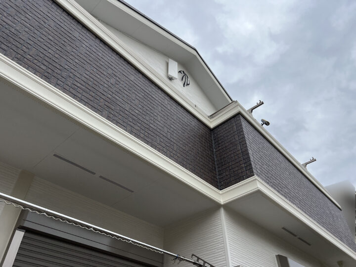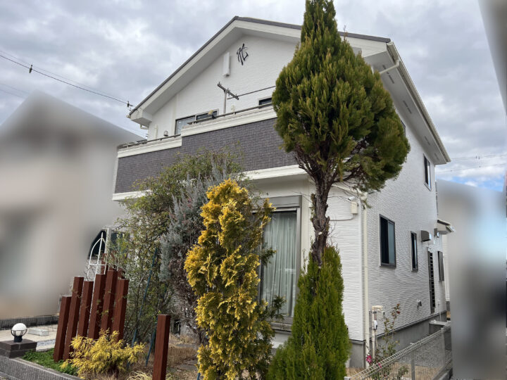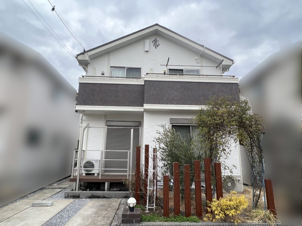 | 使用塗料 | 【外壁】パーフェクトトップ(色:ND-370、アクセント:『絵描く外壁塗装』PREMIUM)+ ピュアコート水性 【屋根】リコロニー(色:ブラウン) 【目地】オートンイクシード 【ベランダ床】通気緩衝工法 |